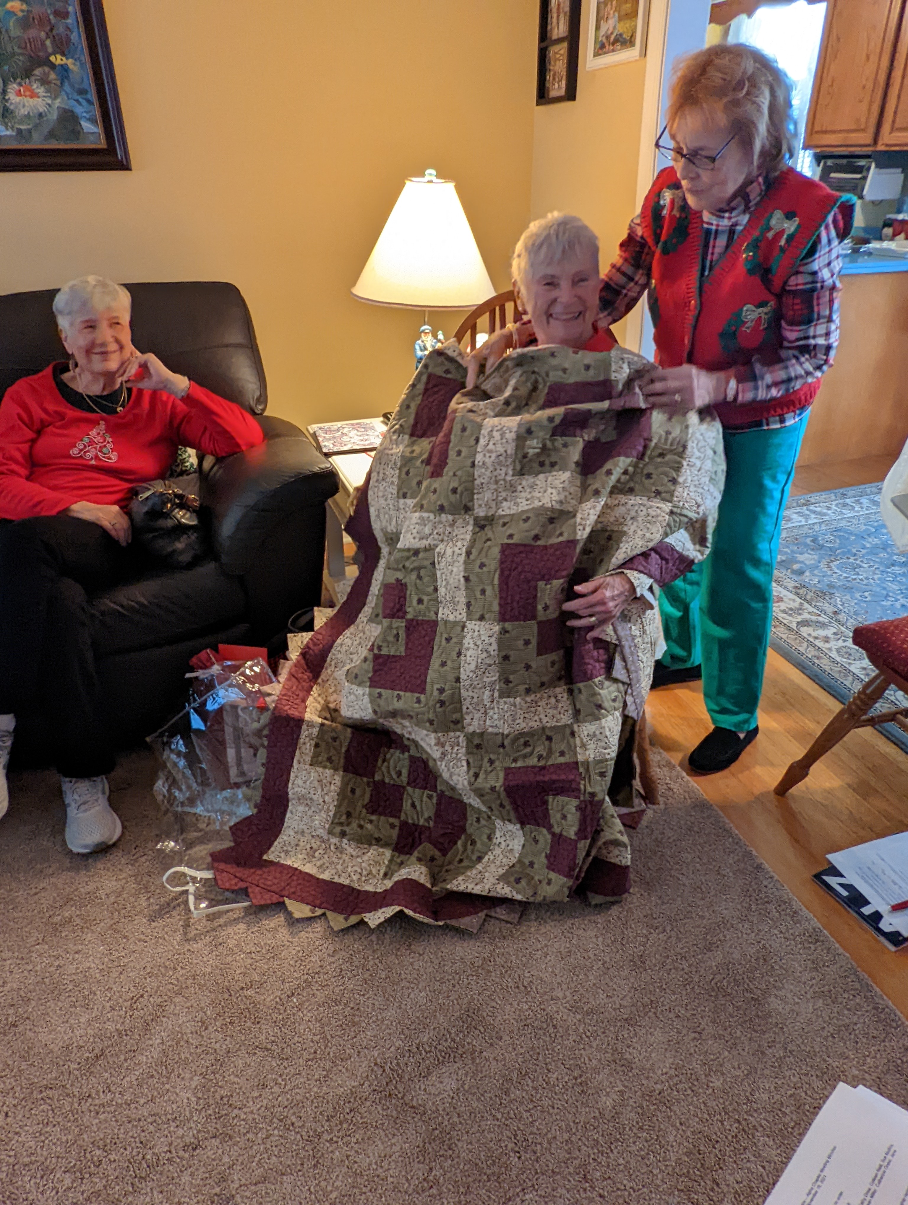 Throughout the fall, we supported a Monthly Bingo at the Jeanne Jugan Residence for the elderly operated by the Little Sisters of the Poor. We continued to support a local Outreach Food Bank by donating non-perishable food items for those in need. Alpha also donated to several local charities. We had a successful handmade quilt raffle to raise money for our scholarship fund. To our delight, the quilt was won by a senior ranking Alpha Sister who has been a member for the past 54 years!!